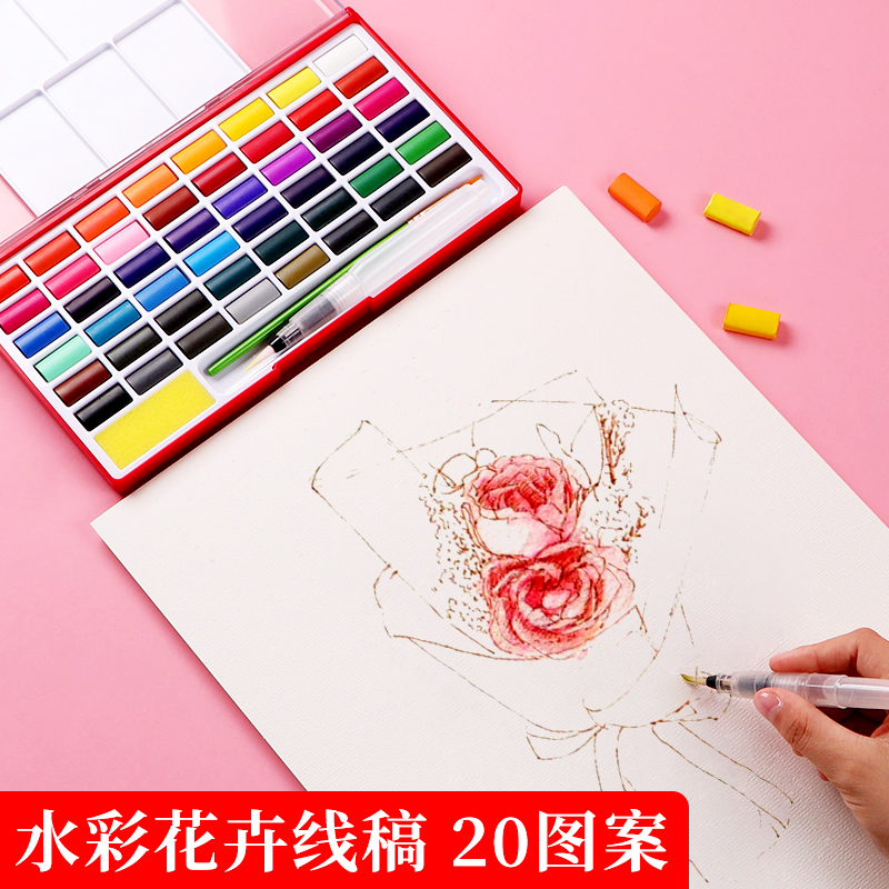 Watercolor line draft coloring book Hand-painted flower coloring line draft coloring picture book Gongbi painting understatement paper Solid watercolor paint tool Ancient style children beginner flower and bird painting