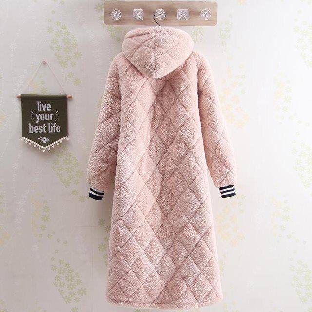 Even Cap Pure Color Winter Fresh Princess Berbe Suede Cotton Pyjamas for long version of student Sleeping Gown Coral Suede Thickening Woman