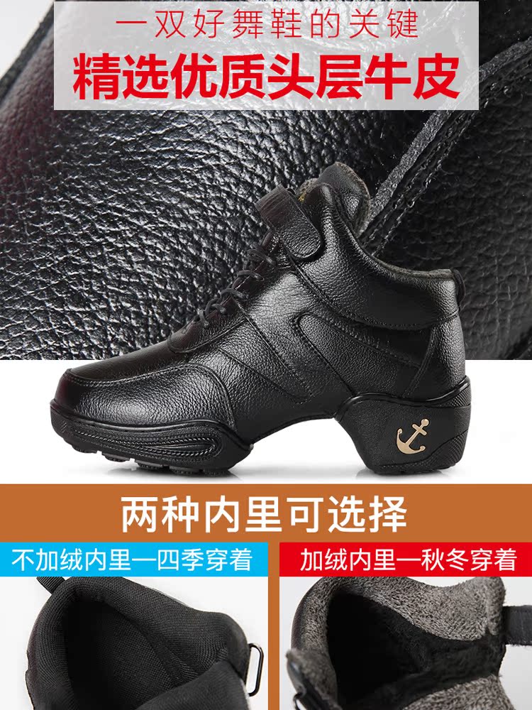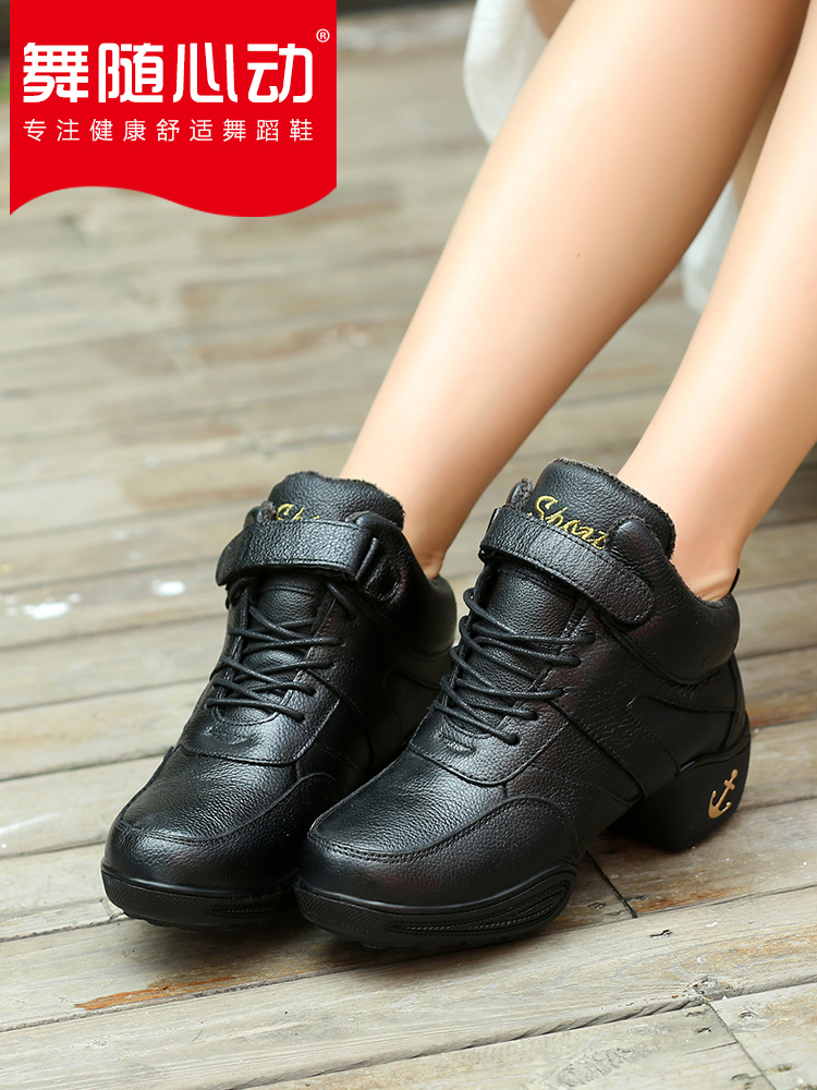 Dance with your heart autumn and winter dance shoes female leather sailor adult dancing shoes middle heel plus velvet warm square dancing women's shoes