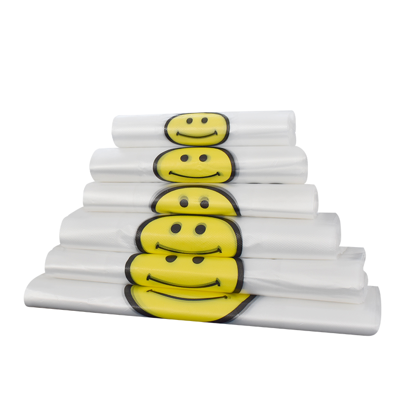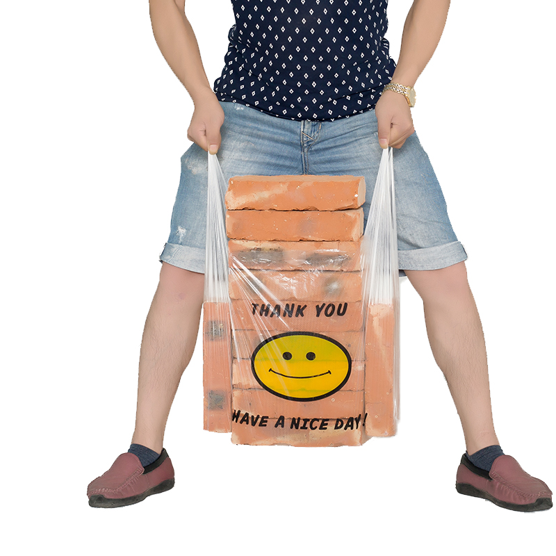 Transparent plastic bag disposable smiley takeaway packing belt convenient shopping hand food wholesale custom commercial