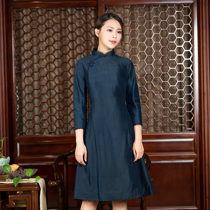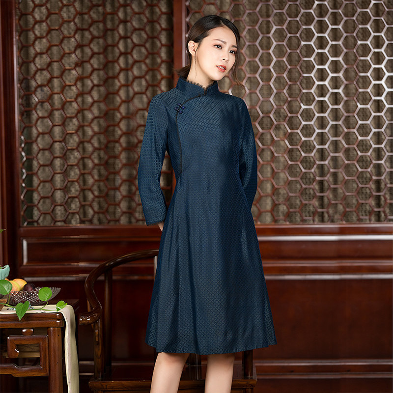 Chinese retro mulberry silk Xiangyun Yarn dress slim slim improved medium and long version of Cheongsam skirt autumn women's genuine products
