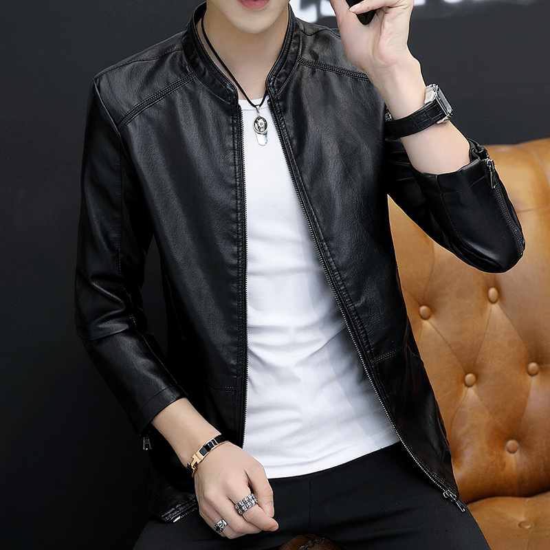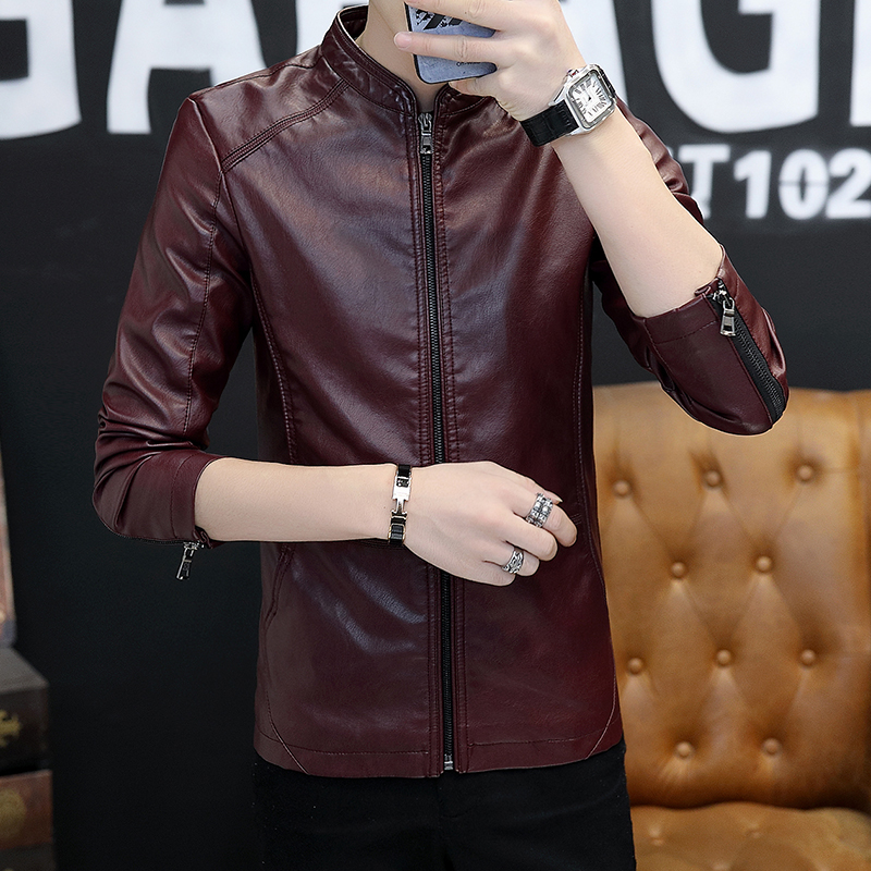 Leather men's winter velvet thickened Korean version slim handsome youth motorcycle leather jacket men's jacket jacket tide brand
