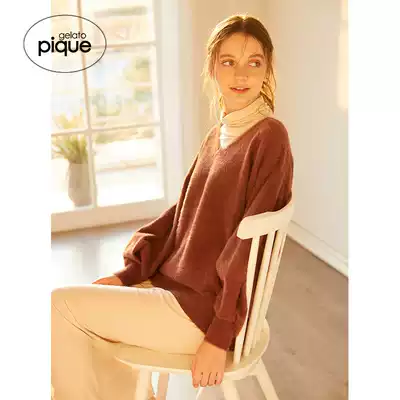 gelato pique autumn/winter women's top solid color soft V collar pullover home pajamas PWNT194081
