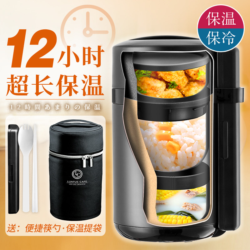 Three layers of 1050ml chopstick spoonful of rock black 1050ml (with a ladle chopstick spoon)
