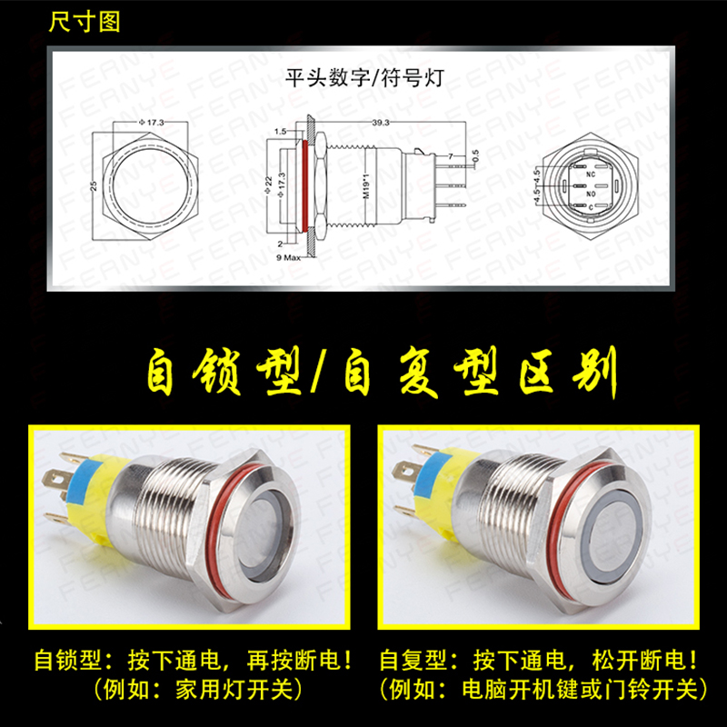 Button switch 19mm self-repeating special symbol custom pattern waterproof round head with lamp point moving metal button switch-Taobao