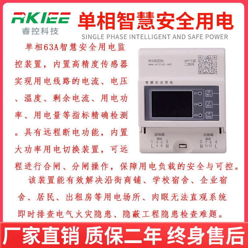 RIMI 220V single phase 63A smart safety electricity monitoring detector device radio electrical fire alarm