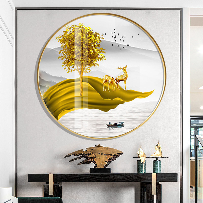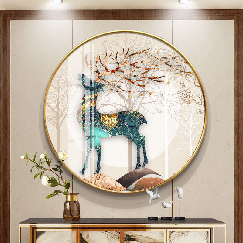 Entrance round porch decoration crystal porcelain painting Nordic living room light luxury background wall painting corridor dining room modern hanging painting