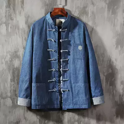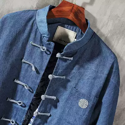Chinese style Tang suit Chinese style men's clothing clasp denim jacket youth Zen clothing National style tea clothing