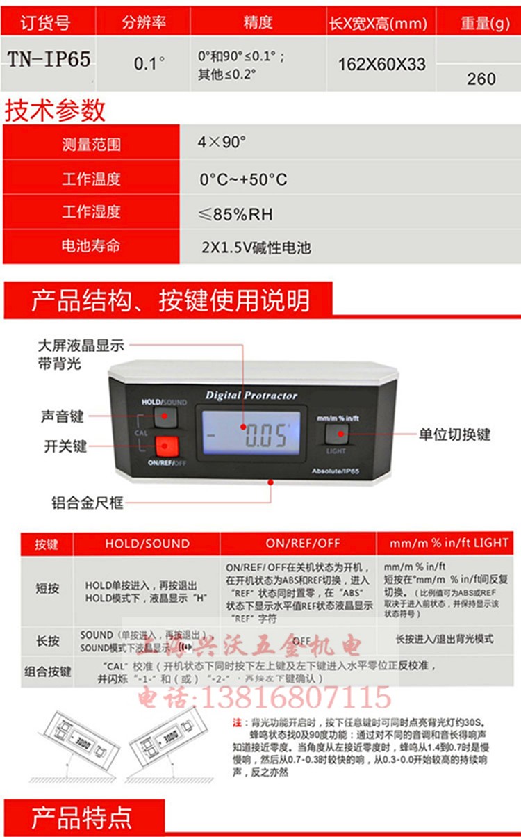 German chip TUNIU waterproof digital display inclinometer TN-IP65 electronic angle ruler PRO360 with magnetic second display