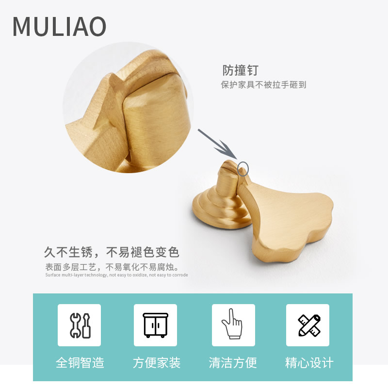 Handle Light luxury modern simple drawer wine cabinet Brass overall cabinet Wardrobe Nordic single hole pure copper gold cabinet door handle
