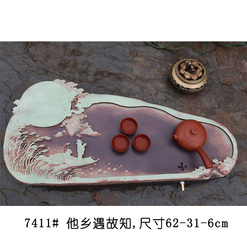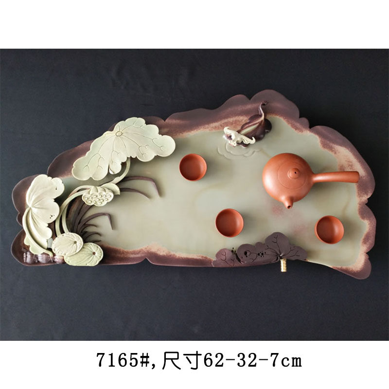 Purple robe jade belt stone tea tray natural rough stone tea set large household stone tea set whole stone tea sea