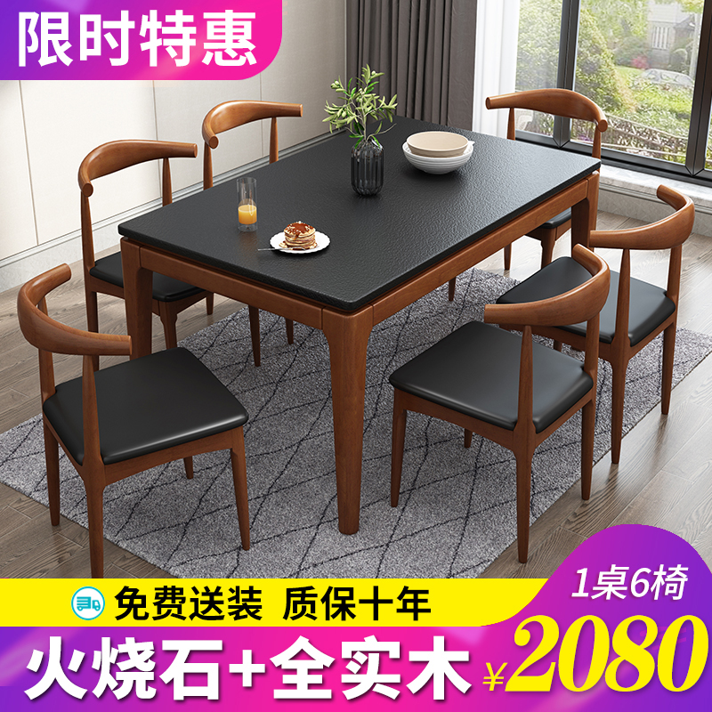 Burning Stone Dining Table And Chairs Combination Brief Modern Nordic Black Sandalwood Full Solid Wood Dining Table Rectangular Household Small Household Type