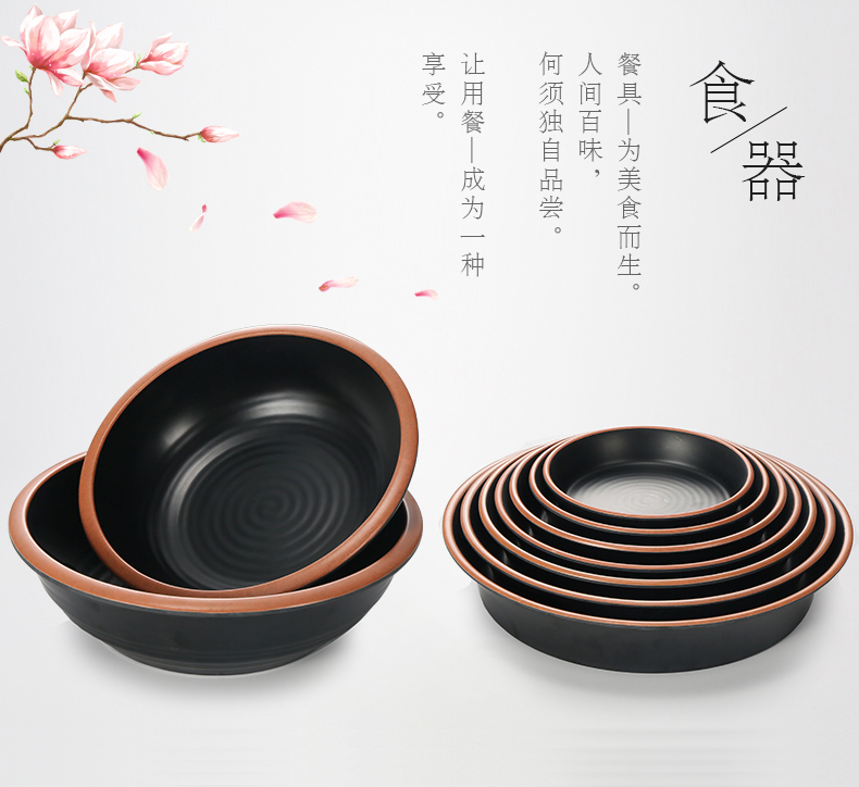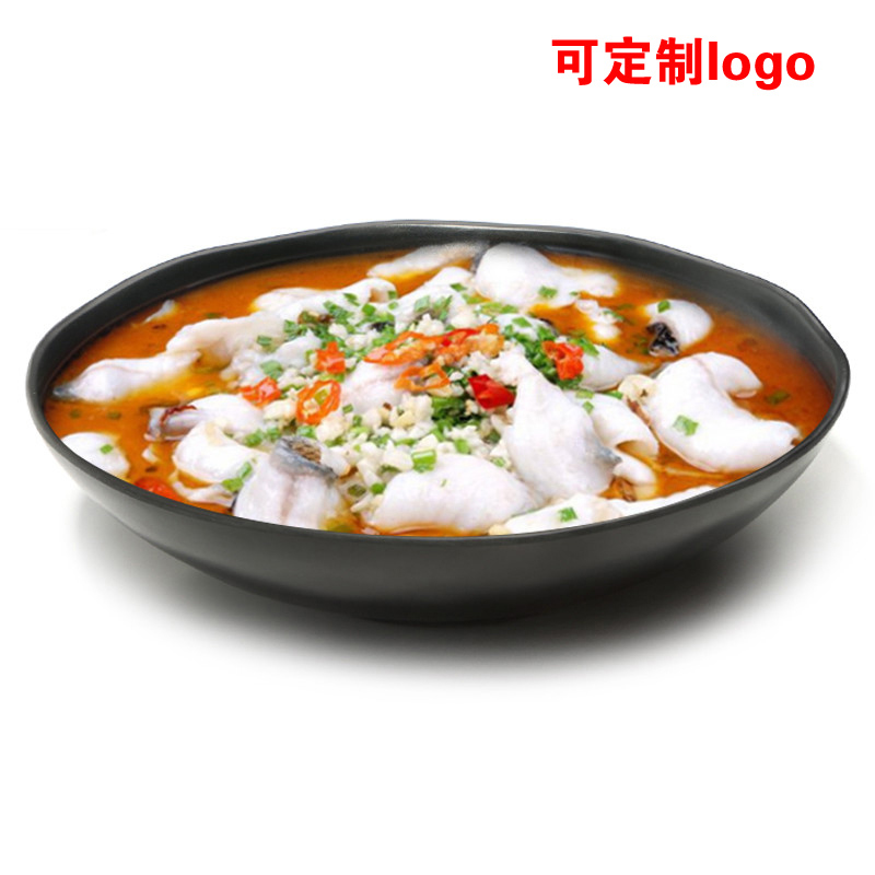 Small Lobster Plate Large Bowl Large Bowl Black Melamine Cutlery Imitation Porcelain Acid Vegetable Fish Pan Water Cooking Fish Pan Linen Spicy Spiced Pan