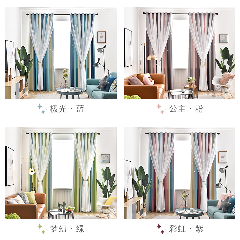 Double layer blackout hollow curtain
