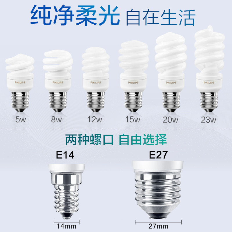 Philips Energy Saving Bulb Screw Type e27e14 Spiromouth Fluorescent Lamp Home Electric Super Bright Daylight Thread 4 Only Fit