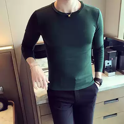 Tide brand long sleeve T-shirt men Cotton Spring and Autumn thin loose round neck white T-shirt slim men's base shirt shirt