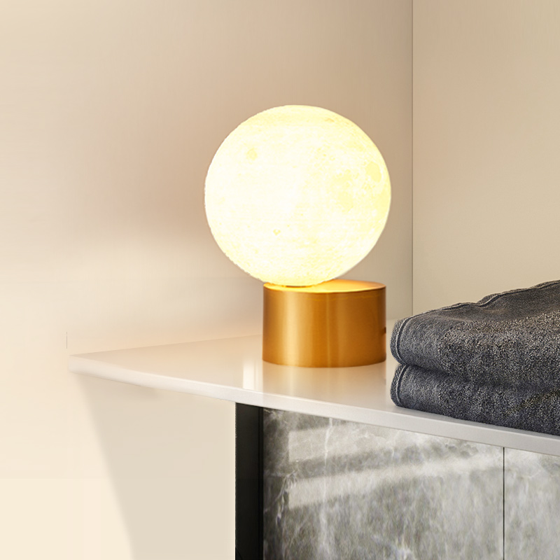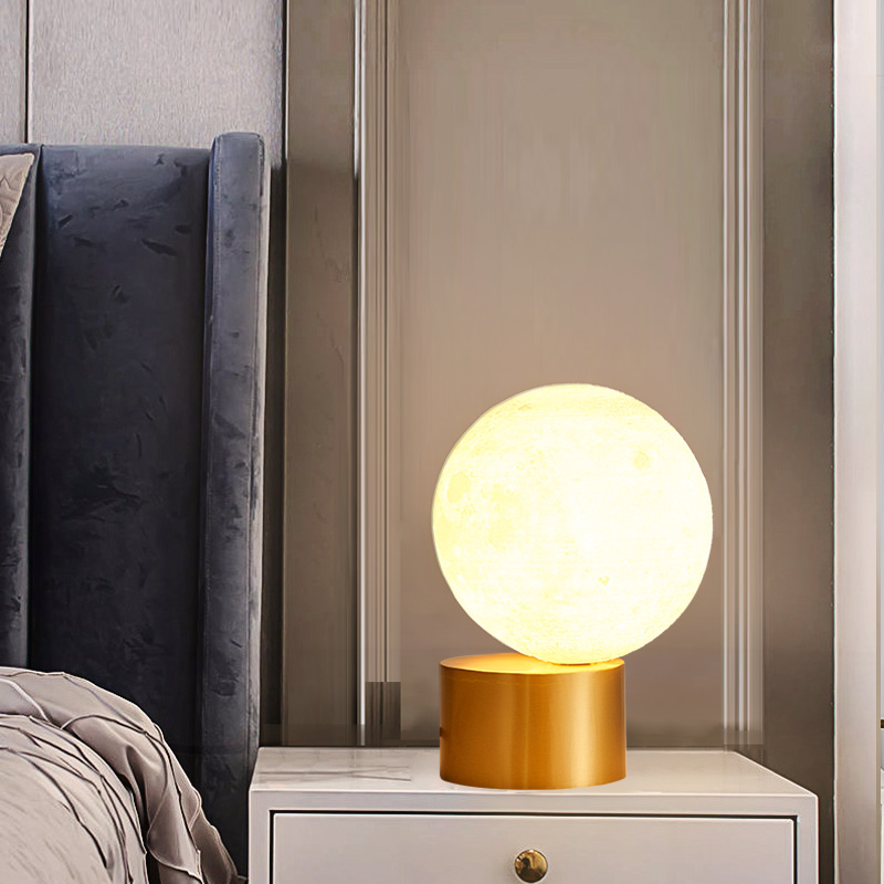 Postmodern minimalist ball table lamp creative living room moon lamp study bedroom bedside net red decoration all copper lamps
