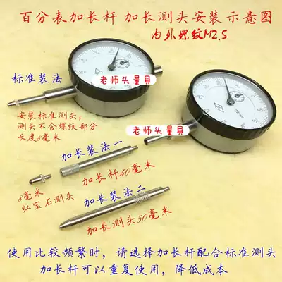 Dial indicator below dial indicator dial gauge ordinary probe extension length probe thread M2 5 General Standard indicator gauge probe