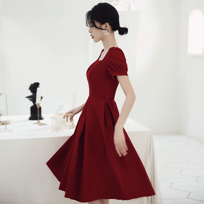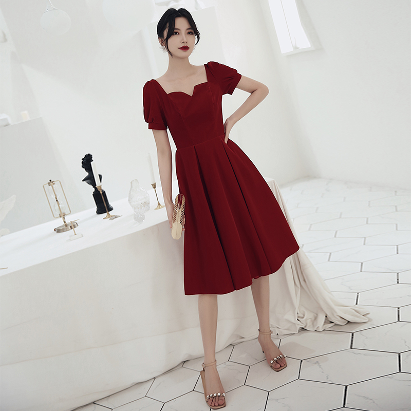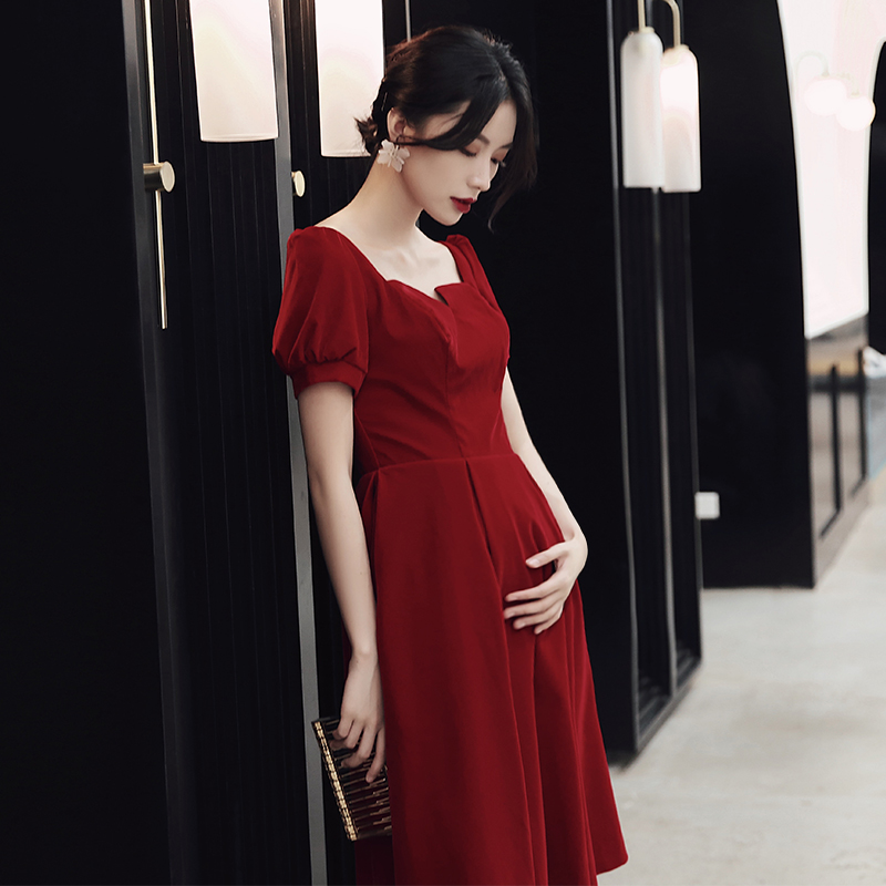 Pregnant woman Large size toast to bridal gown wedding wine red color small gown for women Summer engagement Back to door clothes Fat mm