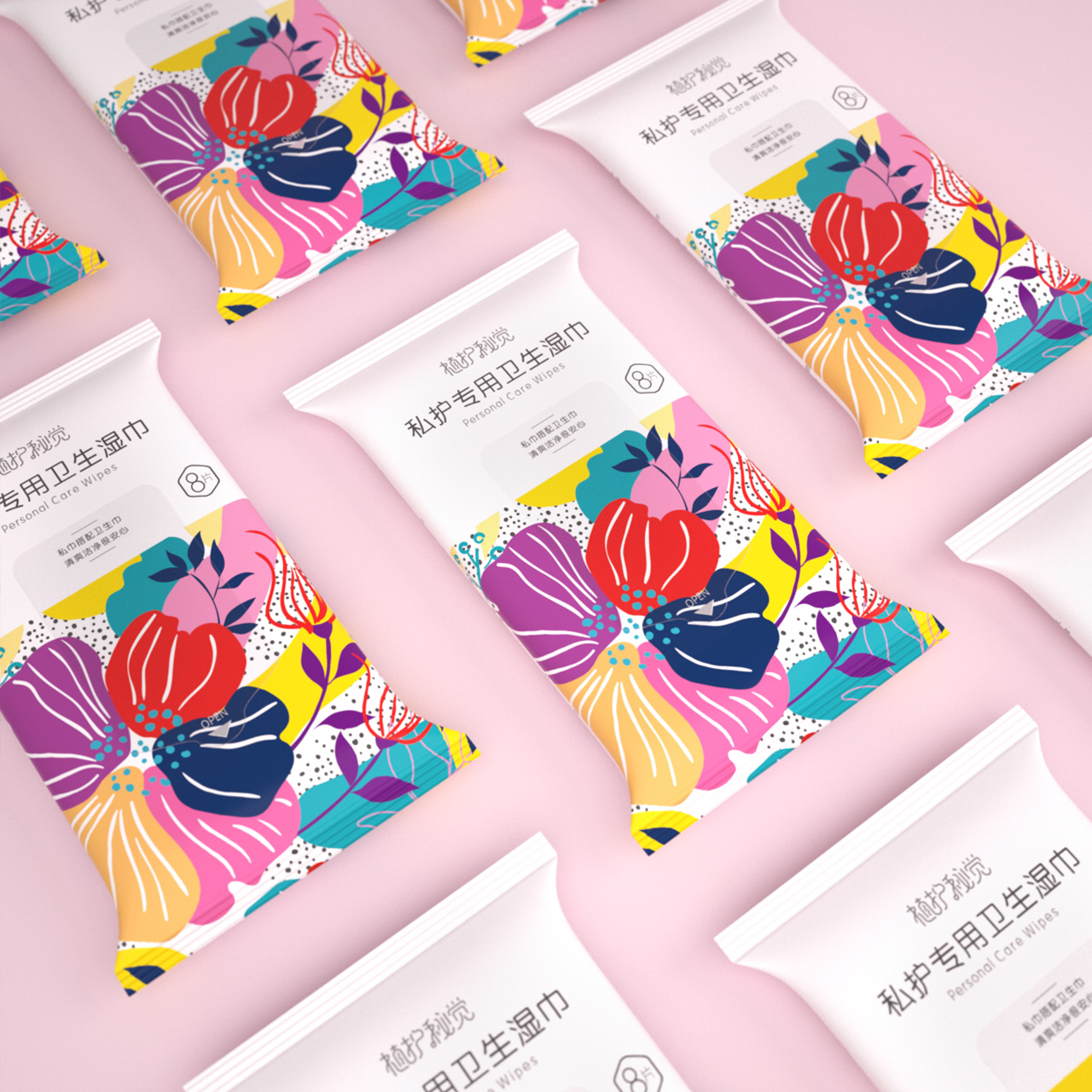 Plant care private parts wet wipes women's private parts cleaning wet wipes antibacterial menstrual small package wet toilet paper