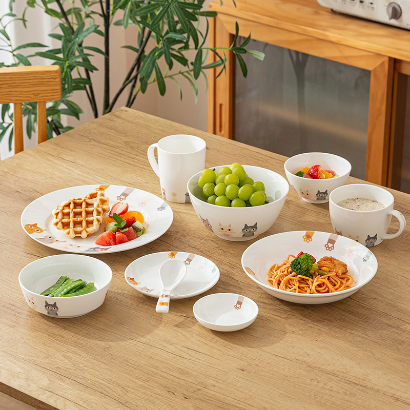 Table spoon (2) Breakfast mug 8 5-inch deep dish Mug Breakfast set of 2 4 6-inch tall rice bowl 5 9-inch round plate Western food set of 4 4-inch deep dish