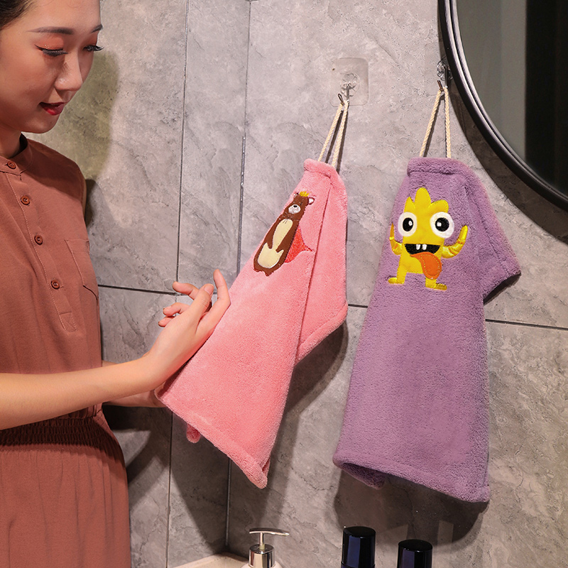 Quick-drying super absorbent hanging hand towel Cartoon cute hand washing hand towel Children's hand towel Hand cloth