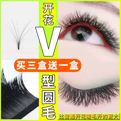 One second flowering eyelashes grafted Iris v-shaped eyelashes 0 05 double Sheng flower round hair super soft Big v thick hair