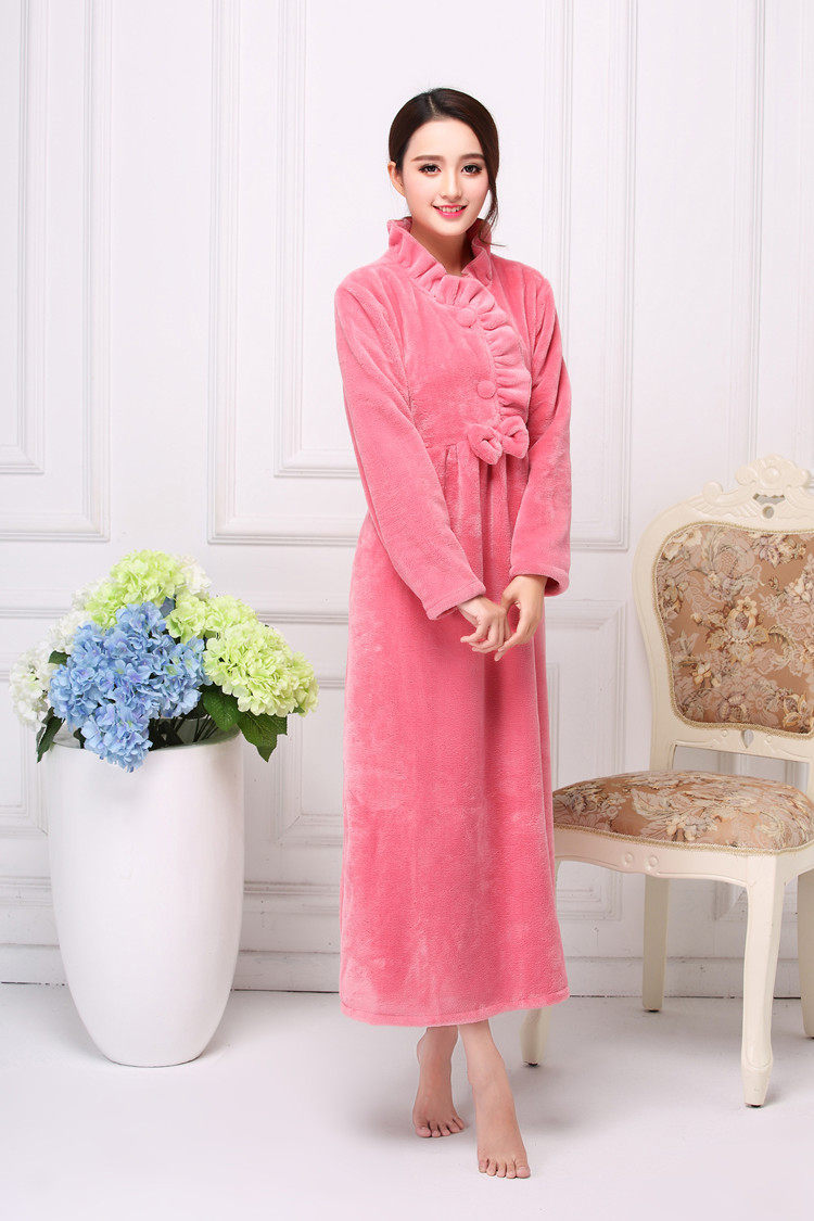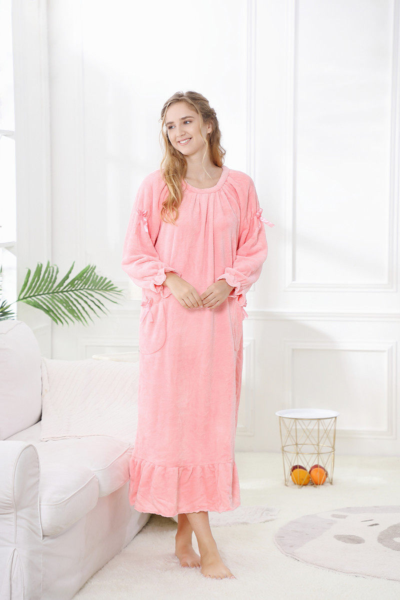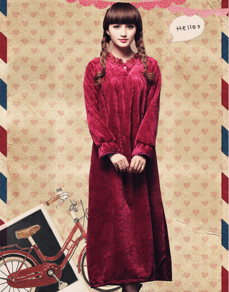 Winter Coral Thickening Warm Jade Rabbit Bifacial Suede Lady Long Sleeve Long Version Loose Rose Princess Pyjamas Sleeping Dress Pyjamas