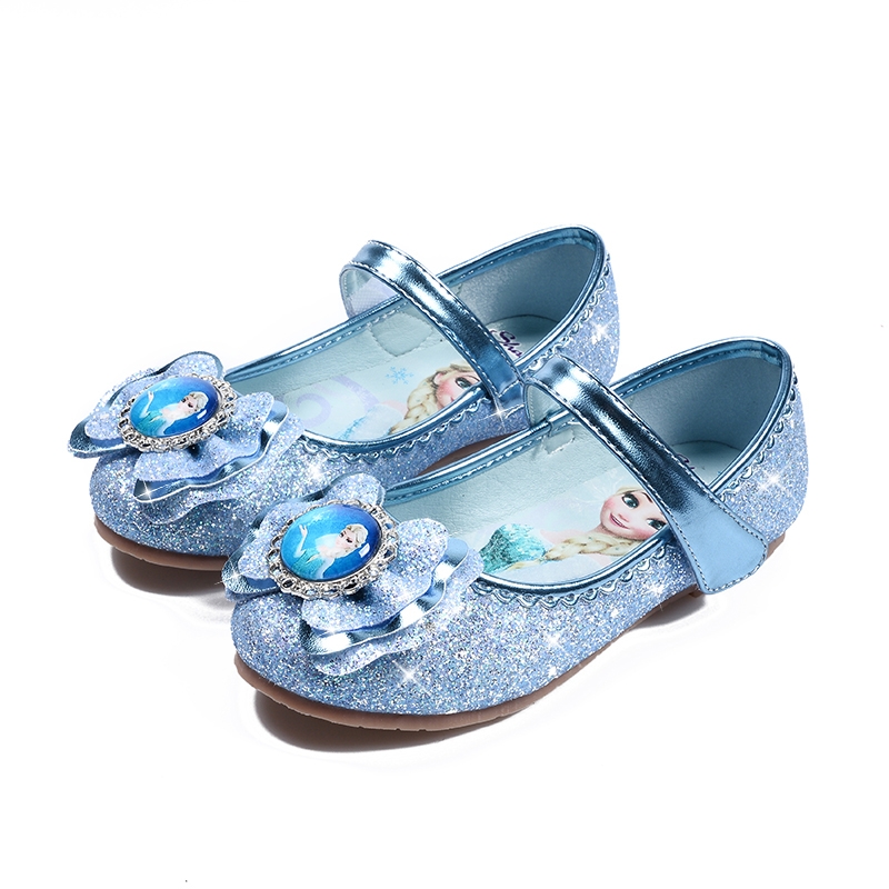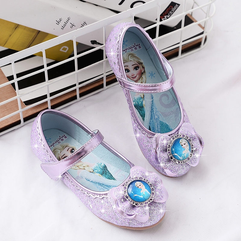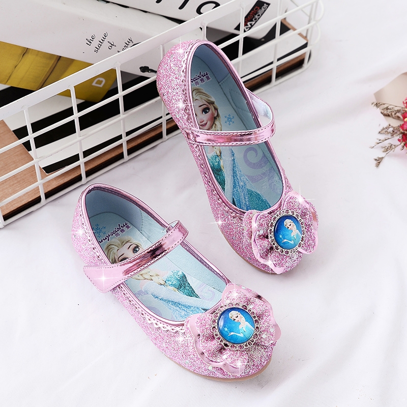 NEW Girl princess shoes Girl leather shoes Aisha Baby shallow mouth frozen soft bottom Aisha children's crystal shoes
