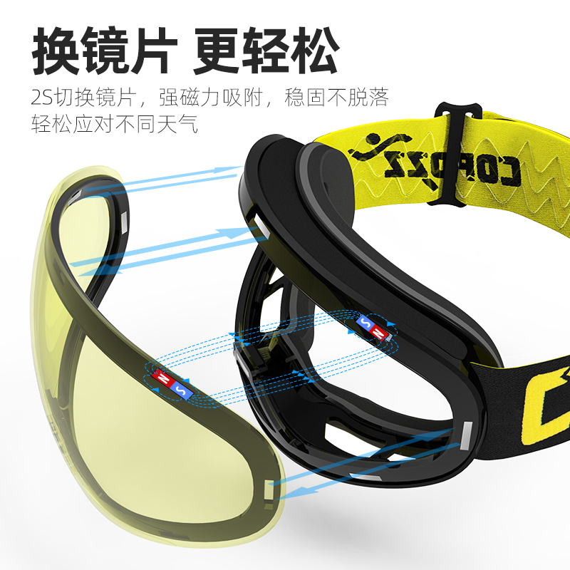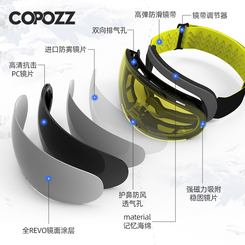 COPOZZ ski glasses men's and women's helmet set nose protection eye protection magnetic suction double-layer anti-fog myopia mountaineering equipment