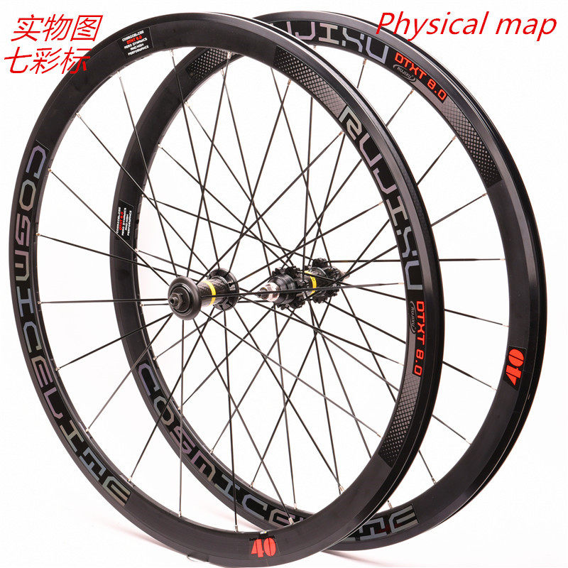 700C 40 knife carbon pipe flower drum dead flying bike race speed wheel field wheel set anti-cursor seven colour scale