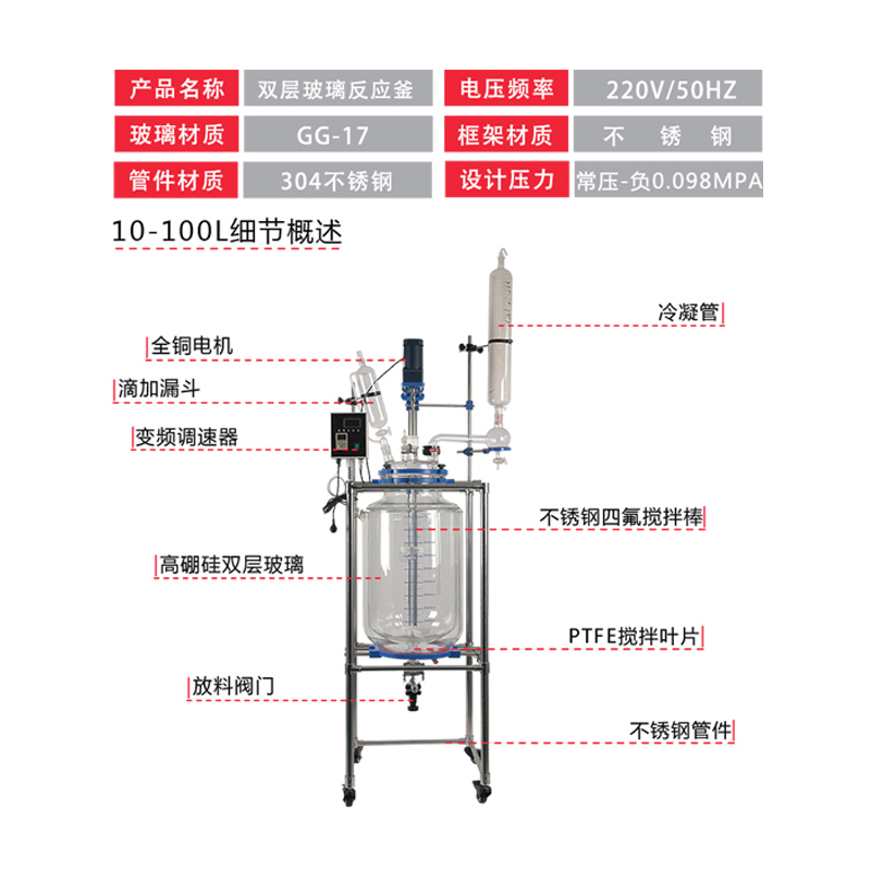 Double layer glass reaction kettle stirring small extraction laboratory glass reactor synthesis reactor 1L-200L