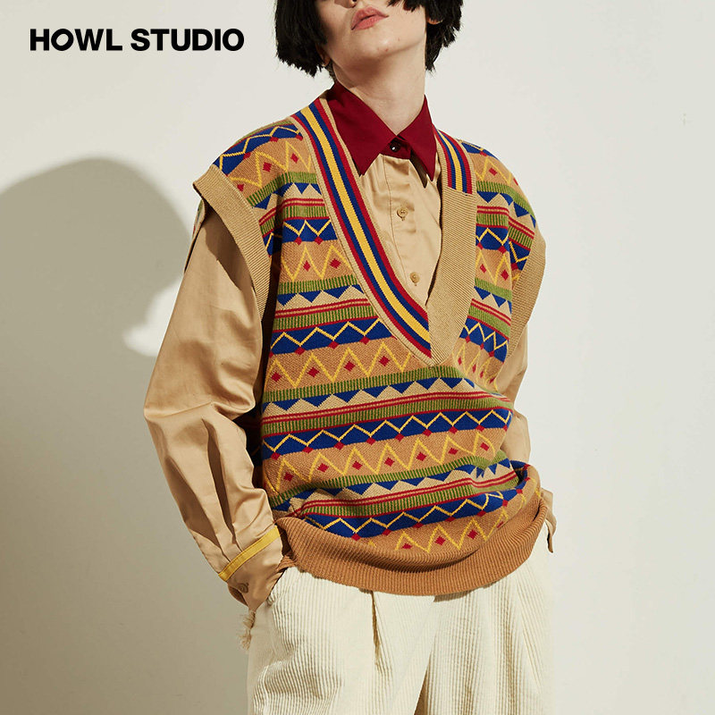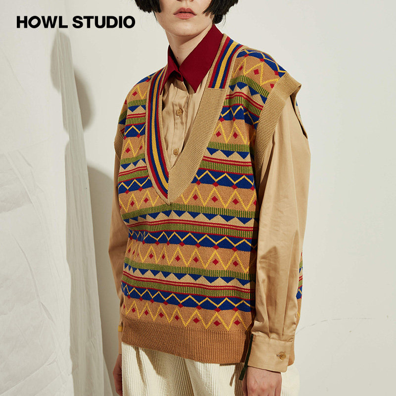 HOWL Evergreen Zhou Yutong I'm good in a foreign country sweater knitted retro lazy V-neck vest