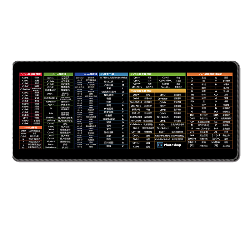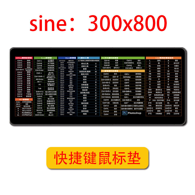 Lylep Shortcut Key Mouse Pad Big Game Slip Rat Pad Keyboard Mat Shortcuts Black Bottom