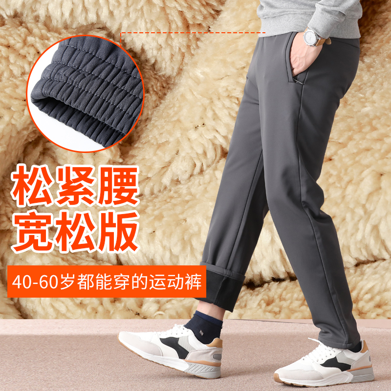 Winter Plus Thicken Dad Lamb Suede Pants Middle-aged Men Casual Grey Sports Pants Men Pants Loose Pants Loose Trousers