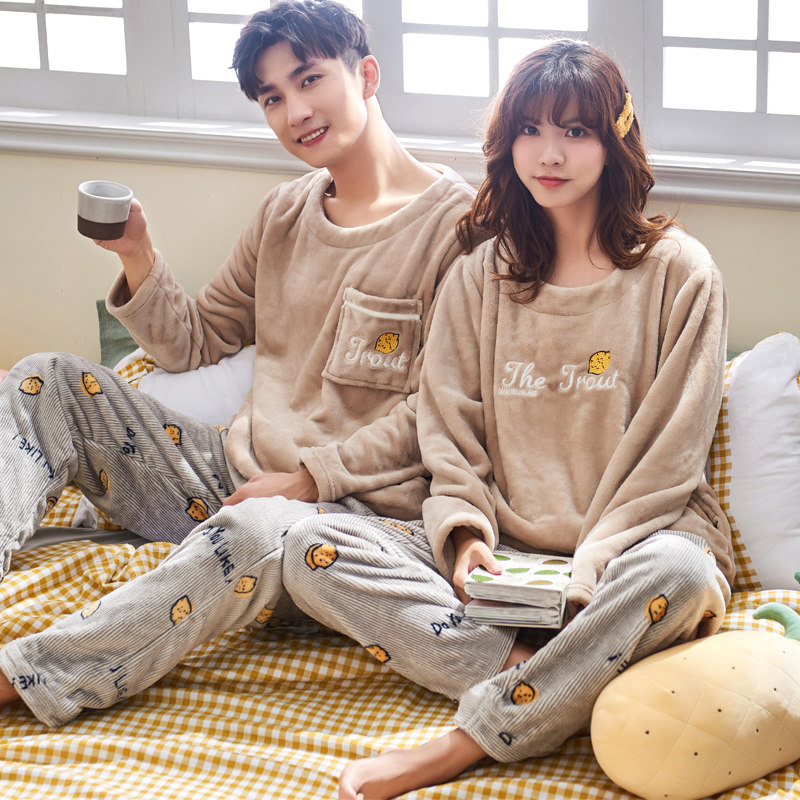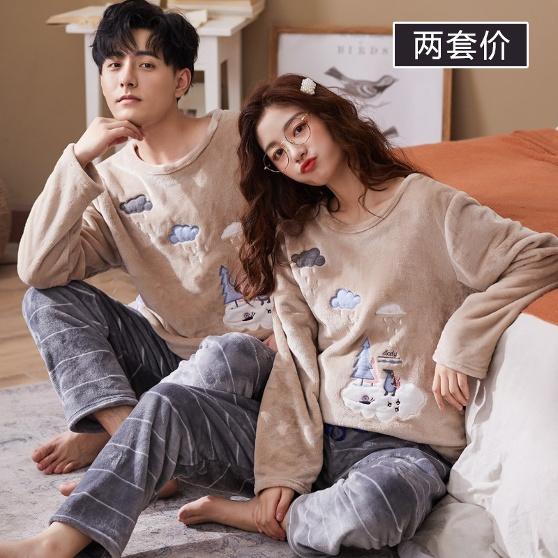 Couple pajamas autumn and winter coral velvet men padded velvet flannel women Spring Autumn stripes home wear winter