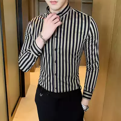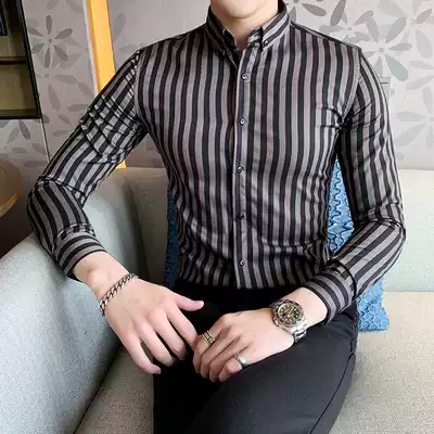 Spring and autumn men's striped long-sleeved shirt British business formal shirt Casual trend brand fashion men's Korean trend
