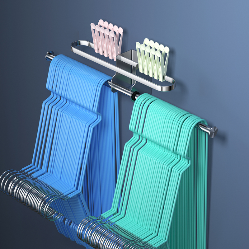 Clothes hanger storage artifact 304 stainless steel clothes hanger storage non-perforated bathroom pendant wall hanging dressing room rack