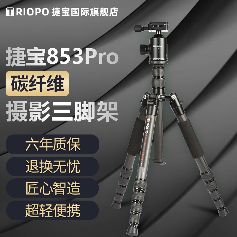 Jiebao 853pro Carbon fiber tripod SLR camera Carbon micro single triangle bracket Portable ultra-light photography and video monopod gimbal Suitable for Canon Fuji Sony night fishing lamp temperature measurement
