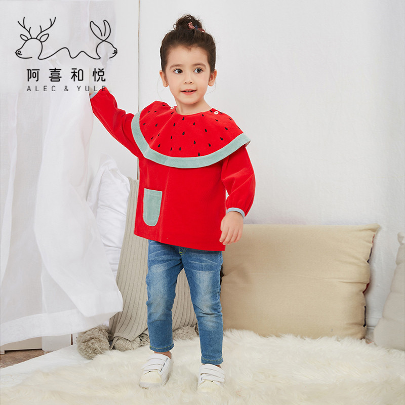 Children's Walled Hood Woman Treasure Pure Cotton Waterproof Long Sleeve Eating Clothes Baby Anti-Dress Baby Protective Clothing Boy Hood Cardiovert Autumn Winter