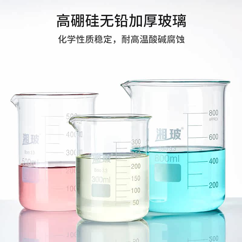Xiang glass high borosilicate transparent glass low type beaker measuring cup with scale school chemistry laboratory equipment thickened high temperature heating drinking water 100 250 500 1000 ml ml