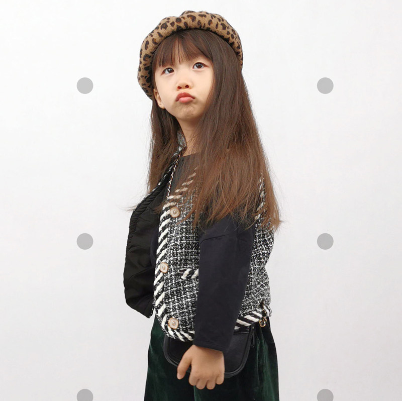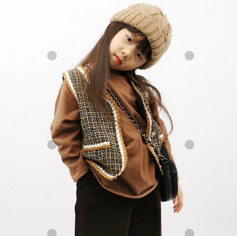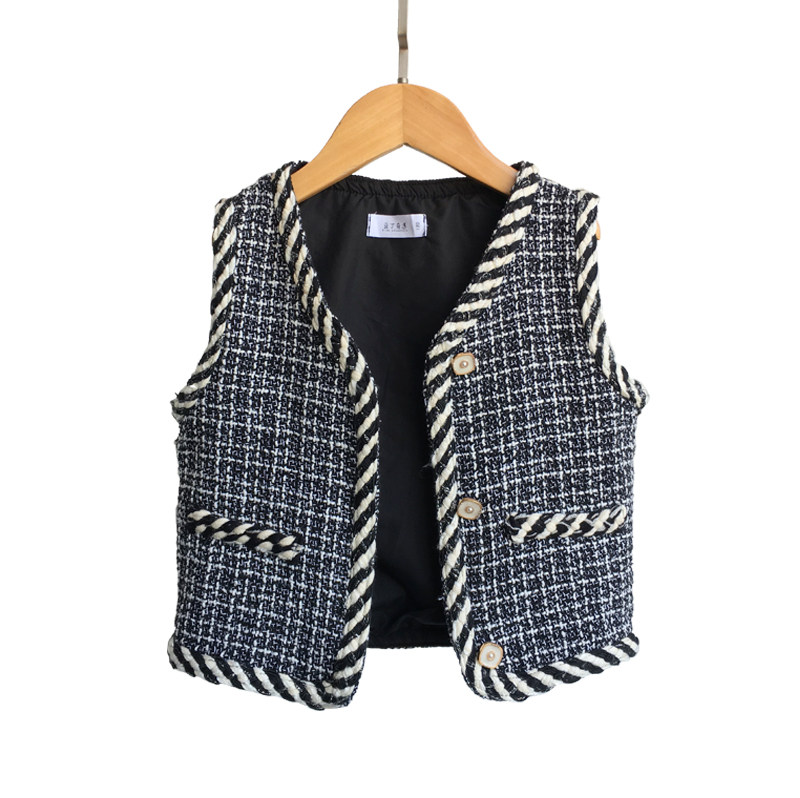 Douding Qiyu children's clothing girls Korean version Japanese retro small fragrance vest plaid lace vest 19 spring and autumn thin section