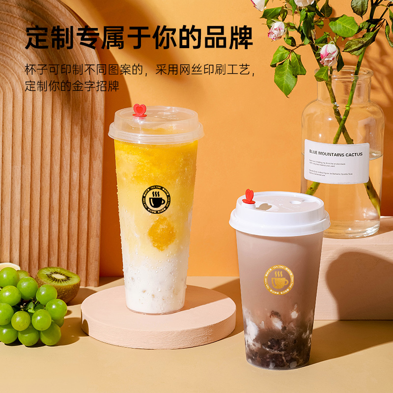 Injection moulded 90 calibre Milk Tea Cup Thickened Drink Juice Frosted Cup Transparent Disposable Net Red Plastic Cup Cover Commercial