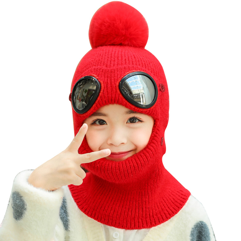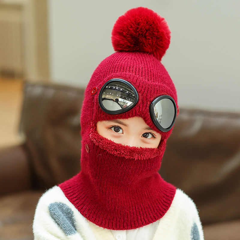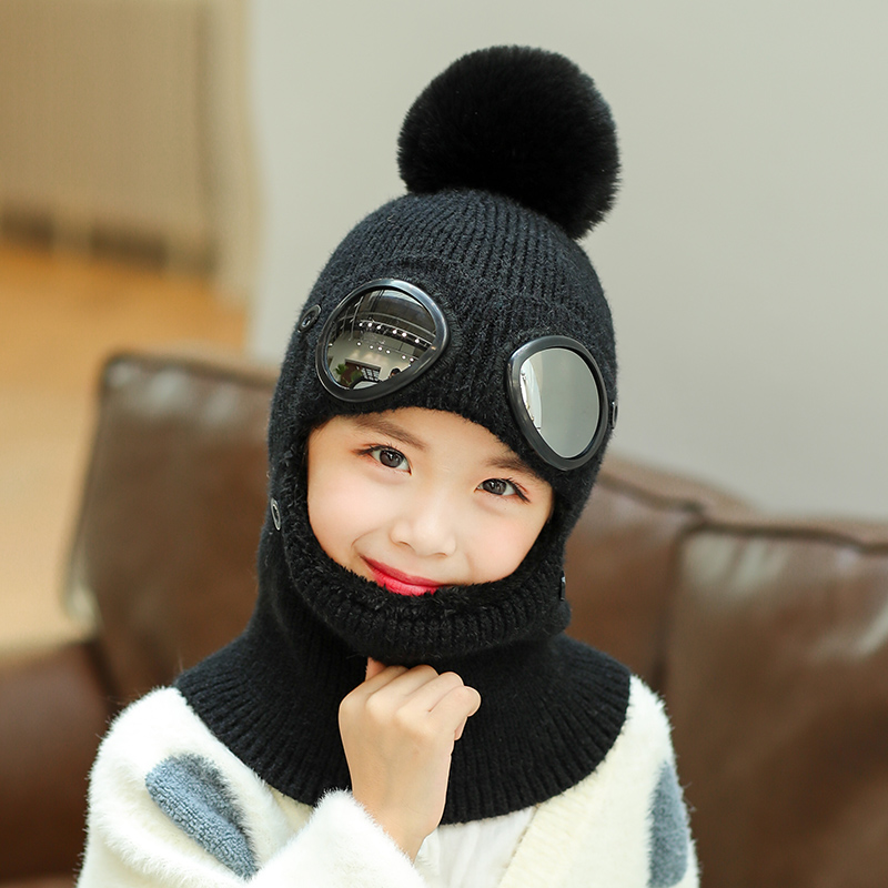 Children's hat autumn winter girl's windproof protective ear integrated hair line cap with suede warm surrounding neck child male baby hat