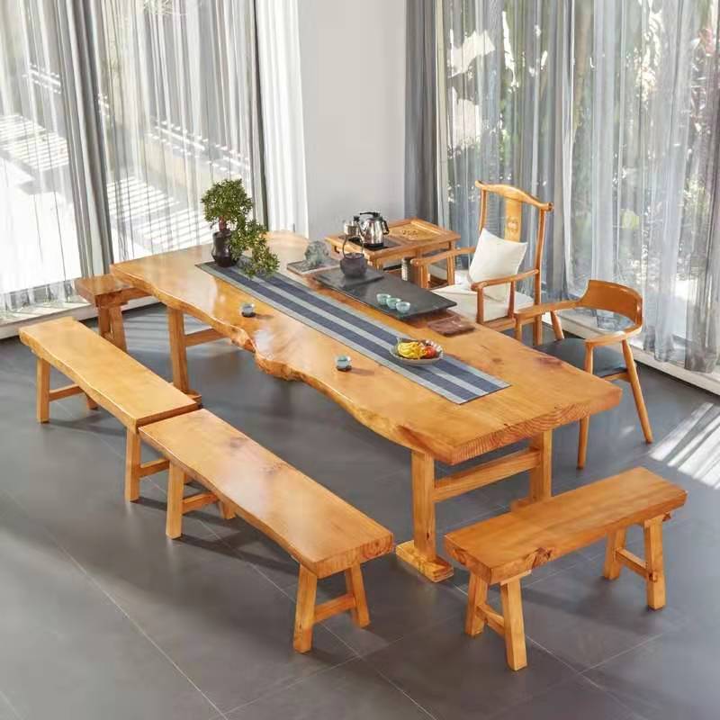 New Chinese log kung kung fu tea table and chair combined Zen old elm solid wooden table table and leg