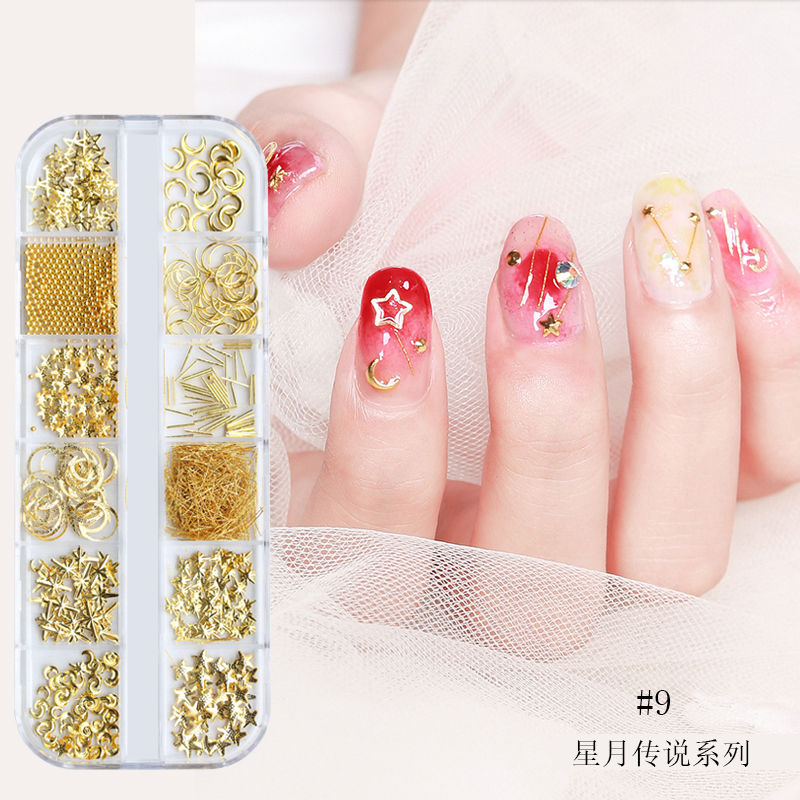 Nail ornaments star moon drilling sandgrain star moon mixing suit day flat bottom nail decoration drill