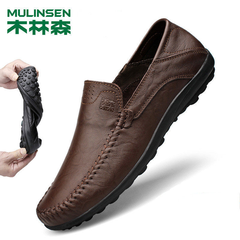 Mulinsen men's shoes autumn 2022 new men's casual leather shoes men's leather spring and autumn soft bottom beanie shoes men
