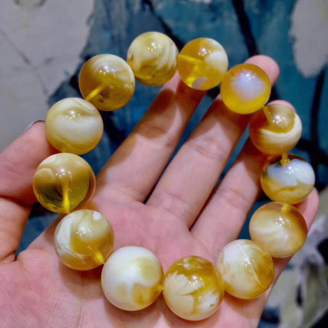 Old Money Honey Wax Pure Natural Baltic Amber Honey Wax Russian White Flower Wax Single Circle Round Beads Male and Female Buddha Beads