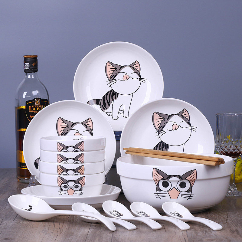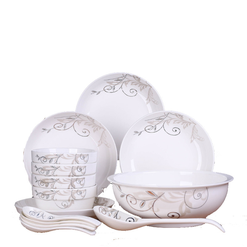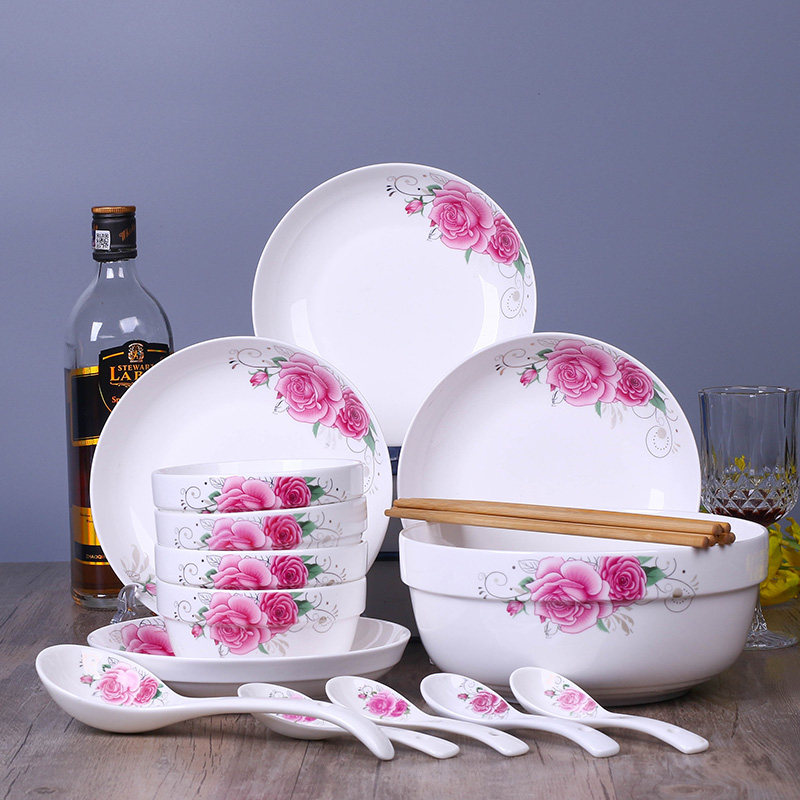 Dish set 2 4 people use Jingdezhen simple bowl chopsticks ceramic dinner set bowl plate Chinese combination tableware