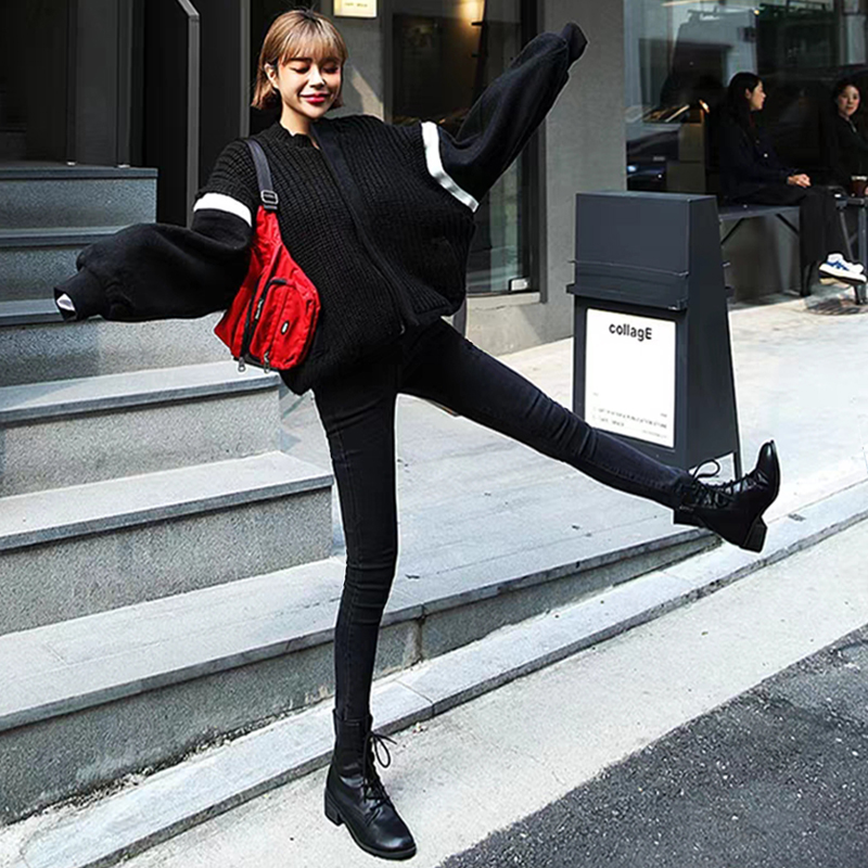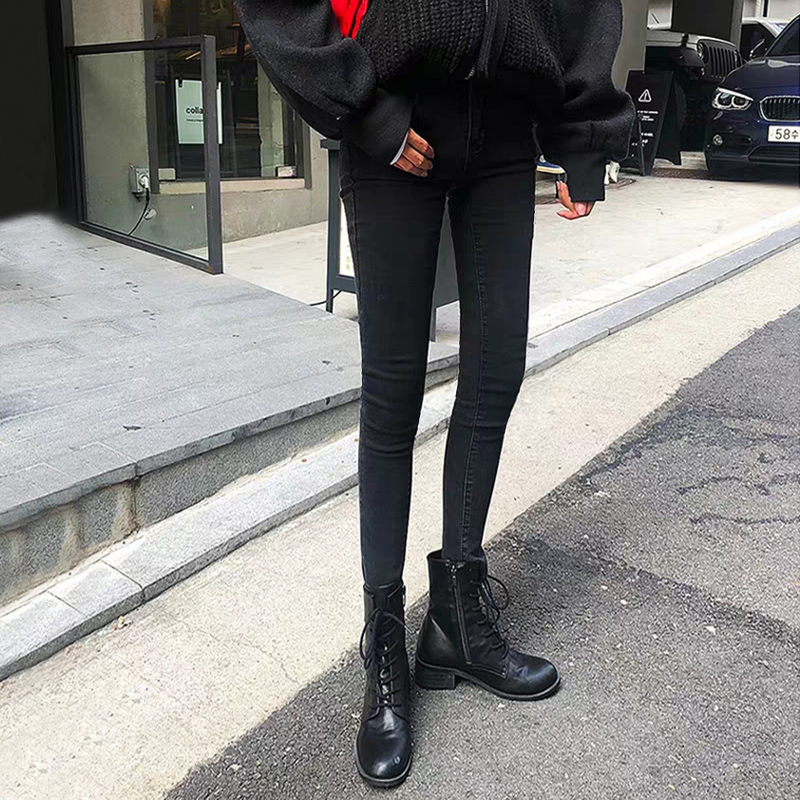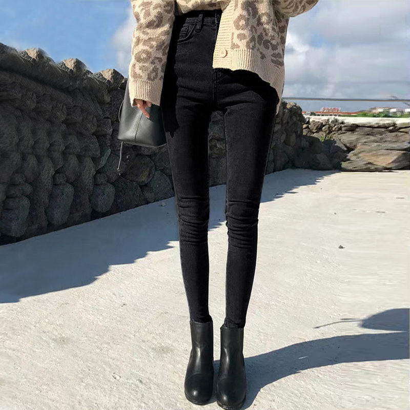 Net Red Black Jeans Woman Spring Autumn 2023 New Fall High Waist Tight Fit Small Feet 90% Pants Autumn with long pants-Taobao